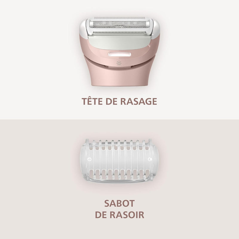 Vous méritez un rasage qui sort de l’ordinaire. Le rasoir pour femmes Philips le plus haut de gamme avec tête de rasage flexible et éclairage LED trouve facilement sa place dans votre routine et assure un confort de peau incomparable. Ce modèle spécial corps complet élimine les poils du visage, du corps et du maillot.
